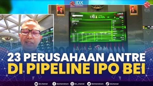 IDX CHANNEL - Bursa Efek Indonesia (BEI) mencatat 23 perusahaan berada dalam pipeline untuk mencatatkan saham perdananya atau Initial Public Offering (IPO). Direktur Penilaian Perusahaan BEI I Gede Nyoman Yetna menyampaikan, perusahaan yang tengah antre IPO saat ini membidik dana sebesar Rp9,5 triliun. Beberapa di antaranya menargetkan emisi lebih dari Rp1 triliun.