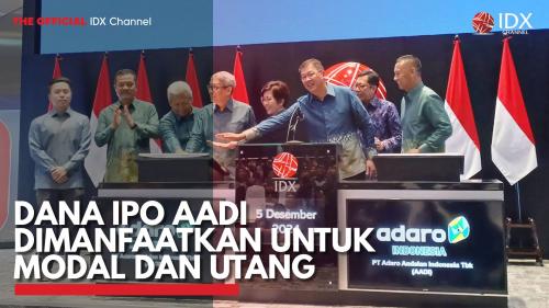 IDX Channel - PT Adaro Andalan Indonesia Tbk (AADI resmi melantai di Bursa Efek Indonesia, setelah melepas 778 juta lembar saham. Direktur Utama AADI menjelaskan, bahwa perseroan akan menggunakan dana IPO untuk memperkuat permodalan, hingga membayar pinjaman di tahun depan.