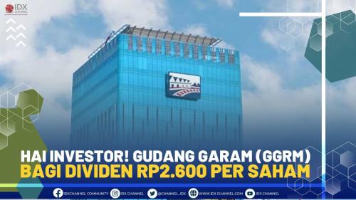 IDX Channel - Rapat Umum Pemegang Saham Tahunan PT Gudang Garam Tbk, menyetujui pembagian dividen sebesar Rp2.600 per saham, untuk tahun buku 2020. Dana untuk dividen tersebut, bersumber dari laba bersih perseroan tahun 2020, yang sebesar Rp7,65 triliun.
