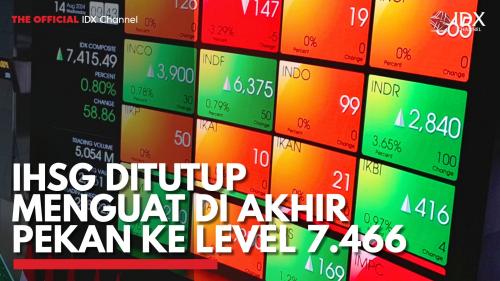 IDX Channel - Indeks Harga Saham Gabungan (IHSG) ditutup menguat 34,74 poin atau 0,47 persen ke level 7.466,83 pada penutupan perdagangan Senin (19/8/2024).