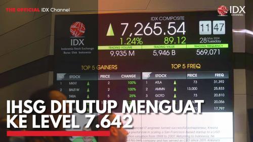IDX Channel - Indeks Harga Saham Gabungan (IHSG) ditutup naik 1,52 persen ke level 7.642,13 pada Selasa (1/10).