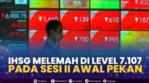 IDXChannel - Indeks Harga Saham Gabungan (IHSG) berada di zona merah pada sesi terakhir perdagangan hari ini, Senin (22/8/2022). IHSG ditutup turun 64,45 poin atau 0,90 persen ke level 7.107,98.