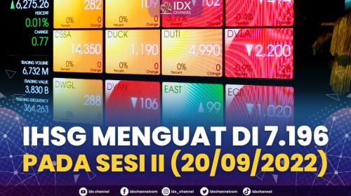 Pada penutupan perdagangan, Selasa (20/9/2022), terdapat 203 saham menguat, 328 saham melemah dan 165 saham stagnan. Transaksi perdagangan mencapai Rp13,2 triliun dari 31,8 miliar saham yang diperdagangkan.