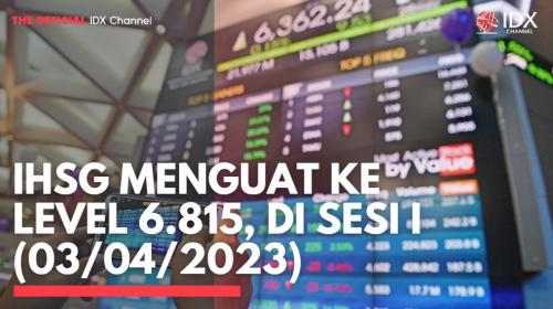 IDX CHANNEL - Indeks Harga Saham Gabungan (IHSG) ditutup menguat pada perdagangan sesi pertama Senin (3/4/2023). Indeks ditutup naik 0,15% atau 10,54 poin ke level 6.815.