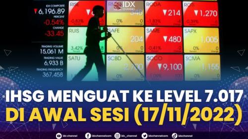 IHSG Menguat ke Level 7.017, di Awal Sesi (17/11/2022),(Sumber: IDX CHANNEL)