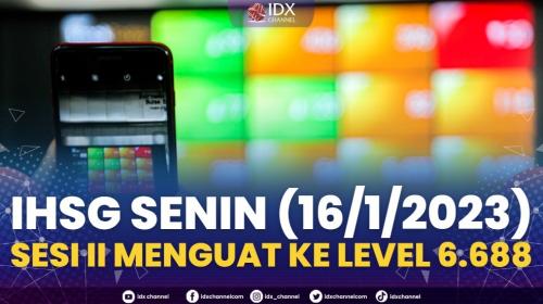 IHSG Senin (16/1/2023) Sesi II Menguat ke Level 6.688,(Sumber: IDX CHANNEL)