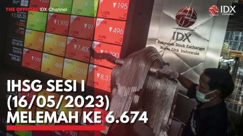 IDXChannel - Indeks Harga Saham Gabungan (IHSG) ditutup melemah pada perdagangan sesi pertama hari ini, Selasa (16/5/2023). Indeks ditutup turun 0,56% atau 37,27 poin ke level 6.674.