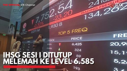 IDX Channel - Indeks Harga Saham Gabungan (IHSG) kembali melemah pada sesi I perdagangan Kamis (13/2/2025). Indeks turun 0,90 persen atau 60,04 poin ke level 6.585,74.