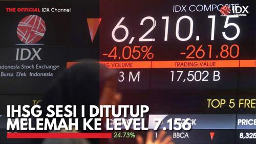 IDX Channel - Indeks Harga Saham Gabungan (IHSG) ditutup di zona merah atau turun 0,80 persen atau 57,59 poin ke level 7.156 pada perdagangan sesi pertama, Senin (26/5/2025).