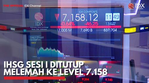 IDX Channel - Indeks Harga Saham Gabungan (IHSG) ditutup di zona merah pada perdagangan sesi pertama, Jumat (13/6/2025). Indeks turun 0,64 persen atau 42,25 poin ke level 7.158.