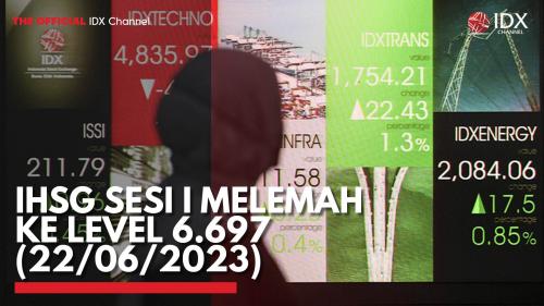 IDX CHANNEL - Indeks Harga Saham Gabungan (IHSG) ditutup melemah pada perdagangan sesi pertama Kamis (22/6/2023). Indeks ditutup turun 0,08% atau 5,53 poin ke level 6.697.