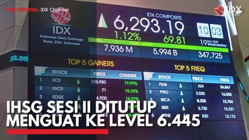 IDX Channel - Indeks Harga Saham Gabungan (IHSG) hari ini (21/4/2025) parkir di zona hijau pada penutupan perdagangan sesi II. Indeks naik 0,12 persen atau 7,69 poin ke level 6.445.