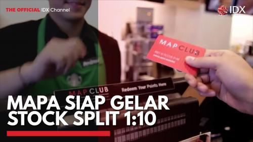 PT MAP Aktif Adiperkasa TBK (MAPA), mengumumkan setiap melaksanakan pemecahan nilai nominal saham atau stock split dengan rasio 1:10.