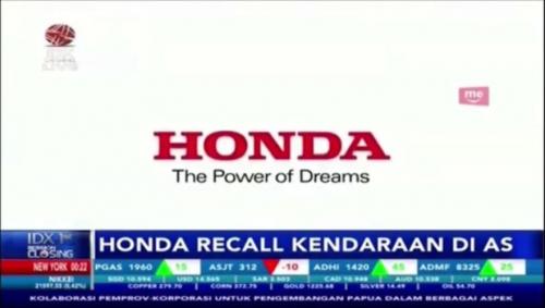 IDXCHANNEL - Pabrikan mobil asal Jepang Honda Motor Company berencana melakukan recall kepada 64.785 unit SUV dan Minivan dari peredaran karena terdapat masalah pada sistem pengereman, hal ini dikhawatirkan bisa memicu kecelakaan dan cedera.