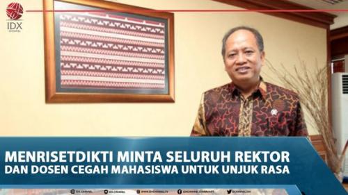 IDX CHANNEL - Menteri Riset Teknologi dan Pendidikan Tinggi, Mohamad Nasir meminta seluruh rektor dan juga dosen untuk tidak menggerakan mahasiswa melakukan aksi unjuk rasa ke jalan, jika terbukti menggerakkan mahasiswa, Kementerian akan mengancam untuk memberi sanksi tegas kepada rektor dan dosen, mulai dari teguran hingga tindakan hukum.