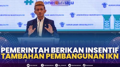 IDX CHANNEL- Kementerian investasi memastikan akan memberikan insentif tambahan bagi para investor yang mau berinvestasi di IKN. Kementerian memastikan insentif tambahan ini dilakukan khusus bagi IKN, di luar insentif yang diberikan di daerah lain.
