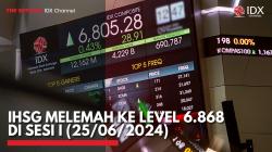 IDX CHANNEL - Indeks Harga Saham Gabungan (IHSG) pada penutupan perdagangan di sesi I di hari Senin ini (25/07/2022) ditutup turun 0,21 persen atau 14 poin ke posisi 6.872.