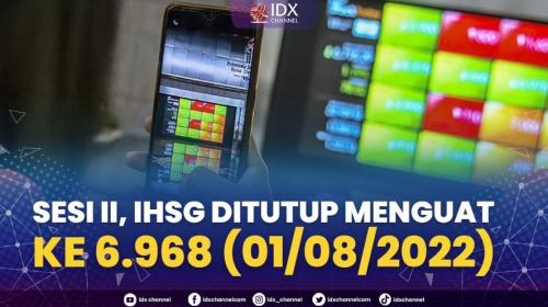 IDX CHANNEL - Penutupan Indeks Harga Saham Gabungan (IHSG) di sesi II diperdagangkan hari ini (01/08/2022), ditutup di zona hijau mengalami pengutapan di 0,25 persen.