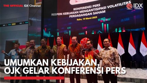 IDXChannel - Otoritas Jasa Keuangan (OJK) dan Bursa Efek Indonesia (BEI) menggelar konferensi pers sebagai respons kebijakan dalam mengantisipasi volatilitas perdagangan saham di Main Hall Bursa Efek Indonesia (BEI). Kepala Eksekutif Pengawas Pasar Modal, Keuangan Derivatif, dan Bursa Karbon OJK, Inarno Djajadi resmi kembali menerapkan kebijakan buyback saham tanpa RUPS sebagai respons atas tingginya volatilitas di pasar saham.