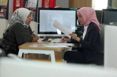 Pegawai Dinas Penanaman Modal dan Pelayanan Terpadu Satu Pintu (DPMPTSP) DKI Jakarta tengah melayani perizinan warga di Mal Pelayanan Publik (MPP) DKI Jakarta, Jakarta, Senin (15/10/2018).