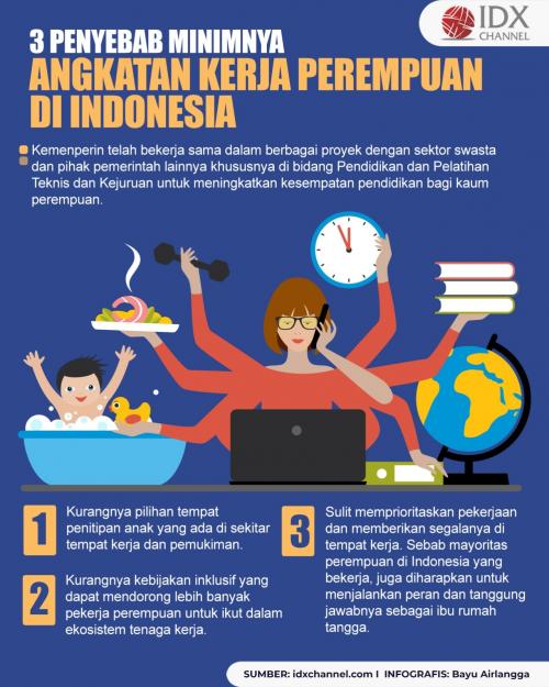 IDXChannel - Kementerian Perindustrian (Kemenperin) menyebut jumlah angkatan kerja perempuan di Indonesia sangat minim dikarenakan kurangnya pilihan tempat penitipan anak yang ada di sekitar tempat kerja dan pemukiman.