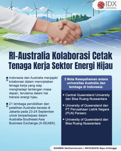 IDXChannel - Indonesia dan Australia menjajaki kolaborasi dalam menciptakan tenaga kerja yang siap menghadapi tantangan masa depan, terutama dalam hal transisi energi hijau.