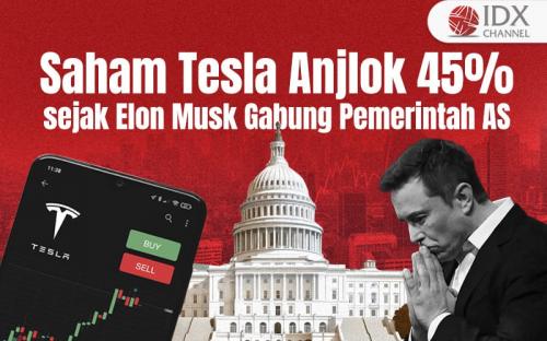 IDXChannel – Saham produsen mobil listrik asal AS, Tesla, anjlok sekitar 45 persen sejak mencatat rekor tertinggi pada Desember 2024. Penurunan itu seiring dengan bergabungnya CEO Tesla Elon Musk ke pemerintahan AS.