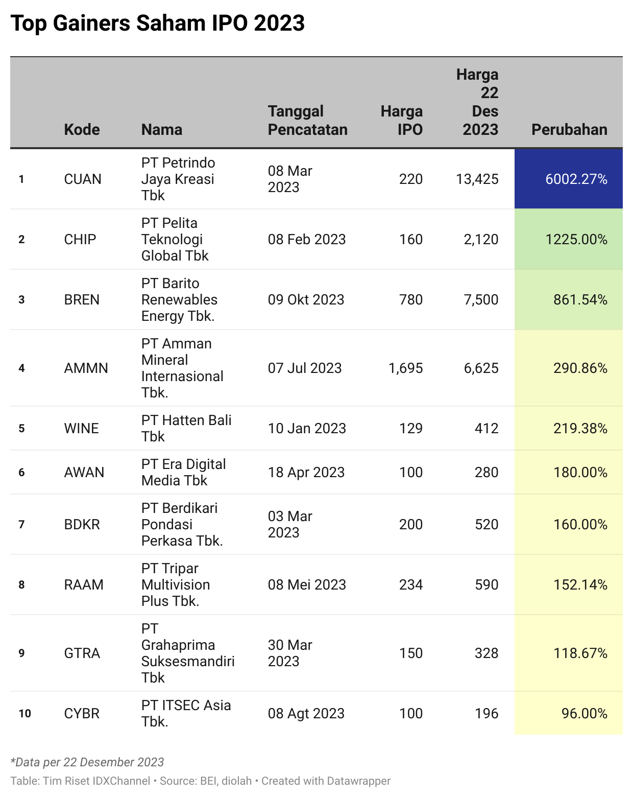 Kenaikan fantastis CUAN, BREN, dan saham lainnya macam BRPT (93,38 persen YtD), TPIA (128,60 persen), hingga PTRO (31,64 persen), selama 2023 menempatkan nama Prajogo Pangestu ke angkasa.