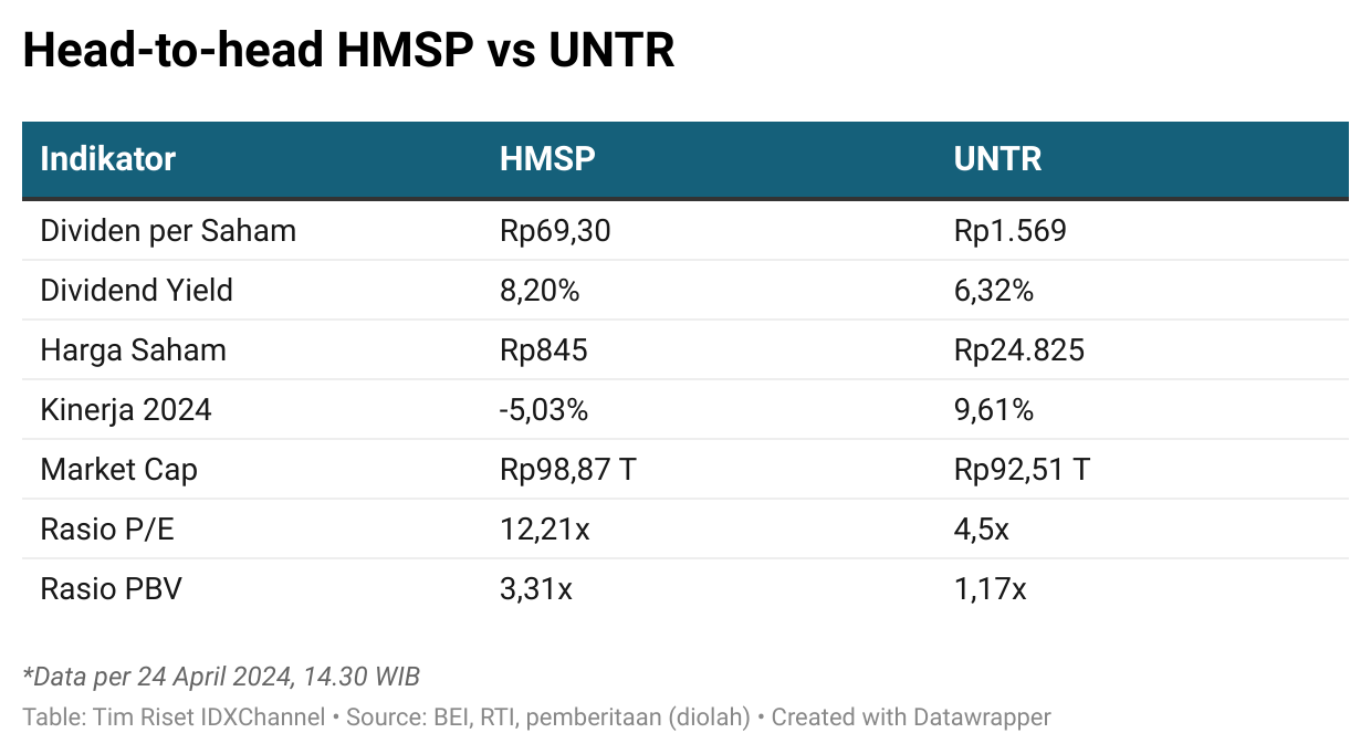 Saham HMSP merosot 5,03 persen selama 2024 (year to date/YtD). Berbeda nasib, saham UNTR melonjak 9,61 persen.