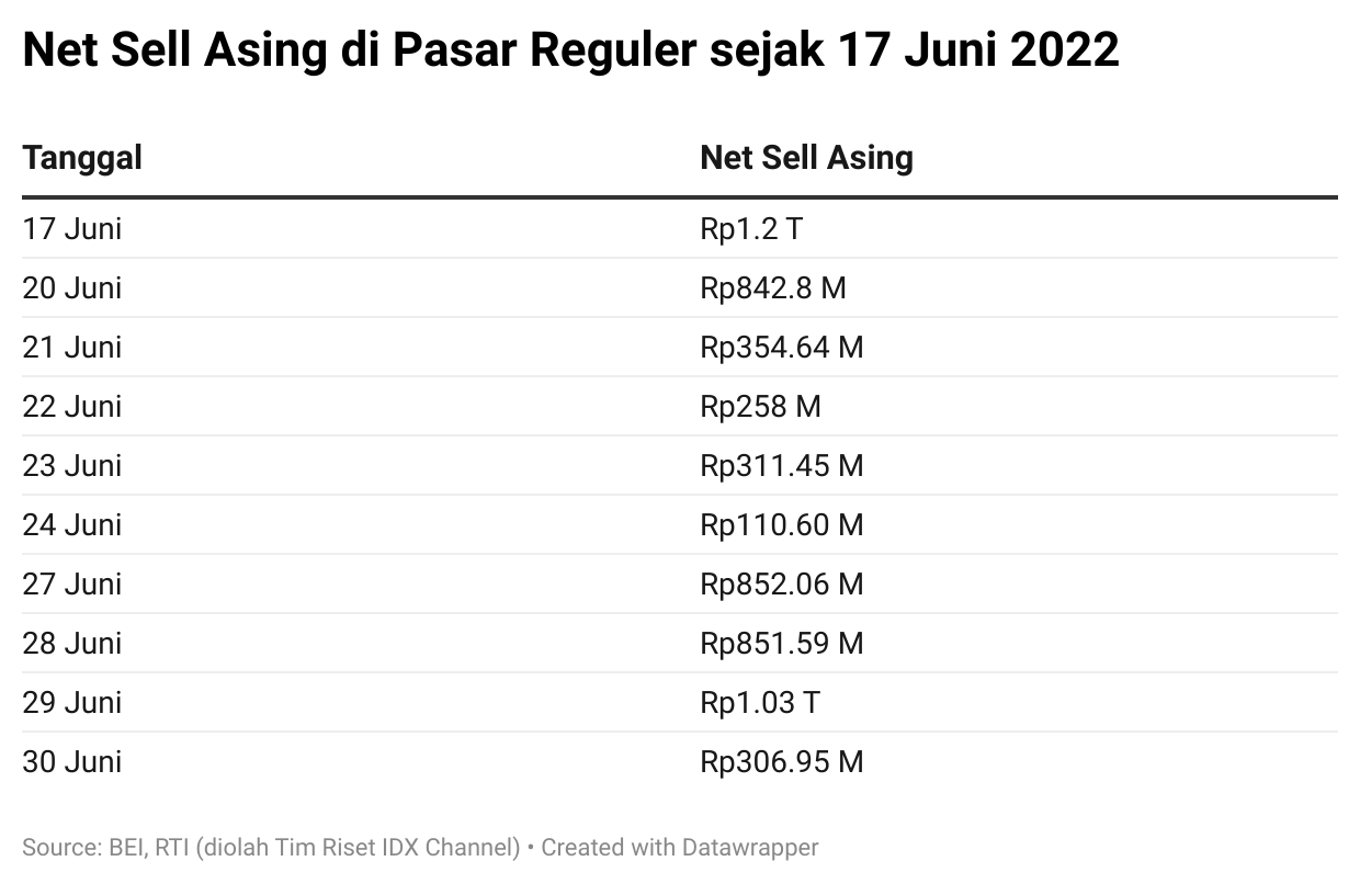 Sementara, investor asing membukukan jual bersih (net sell) jumbo Rp5,51 triliun di pasar reguler sepanjang bulan ini.