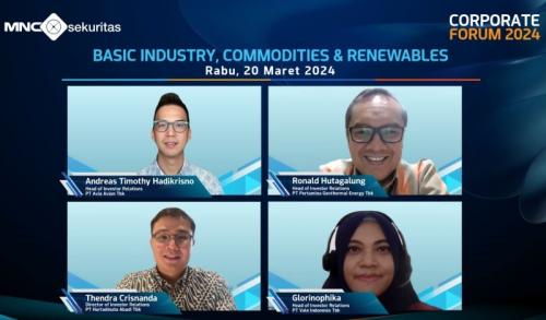Pada gelaran Corporate Forum hari ke-2, Rabu (20/3/2024), MNC Sekuritas menghadirkan empat emiten yang berada di sektor basic industry, commodities & renewables, yaitu PT Avia Avian Tbk (AVIA), PT Pertamina Geothermal Energy Tbk (PGEO), PT Hartadinata Abadi Tbk (HRTA), dan PT Vale Indonesia Tbk (INCO).