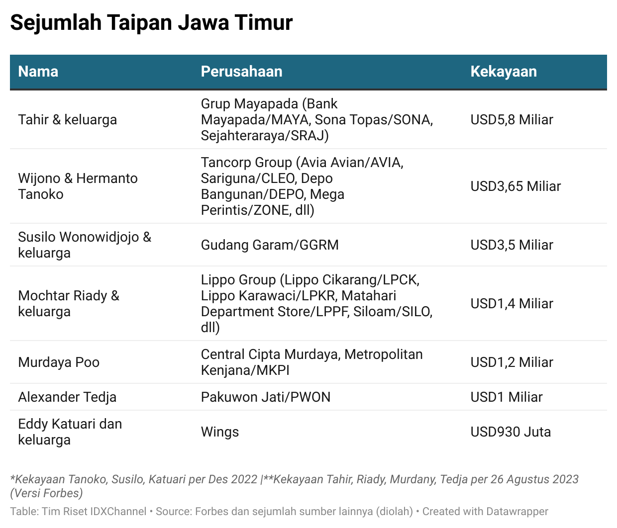 Selain nama-nama di atas, ada nama Alexander Tedja yang merupakan bos properti PT Pakuwon Jati Tbk (PWON) dan bos perusahaan barang konsumen Wings Eddy Katuary. (Lihat tabel di bawah ini.)