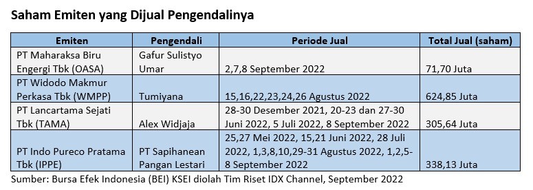 Adapun PT Sapihanean Pangan Lestari tercatat pertama kali menjual saham emiten yang bergerak di bidang minyak kelapa tersebut pada 25 Juli 2022. Pengendali emiten ini kembali menjual saham IPPE pada Kamis (8/9) lalu.
