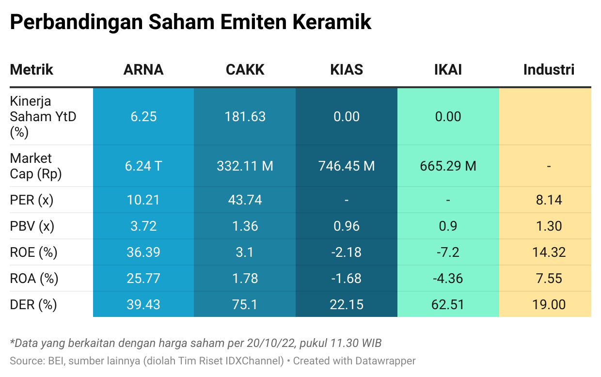 Selain CAKK, setidaknya ada tiga emiten lainnya yang berfokus ke industri keramik.
