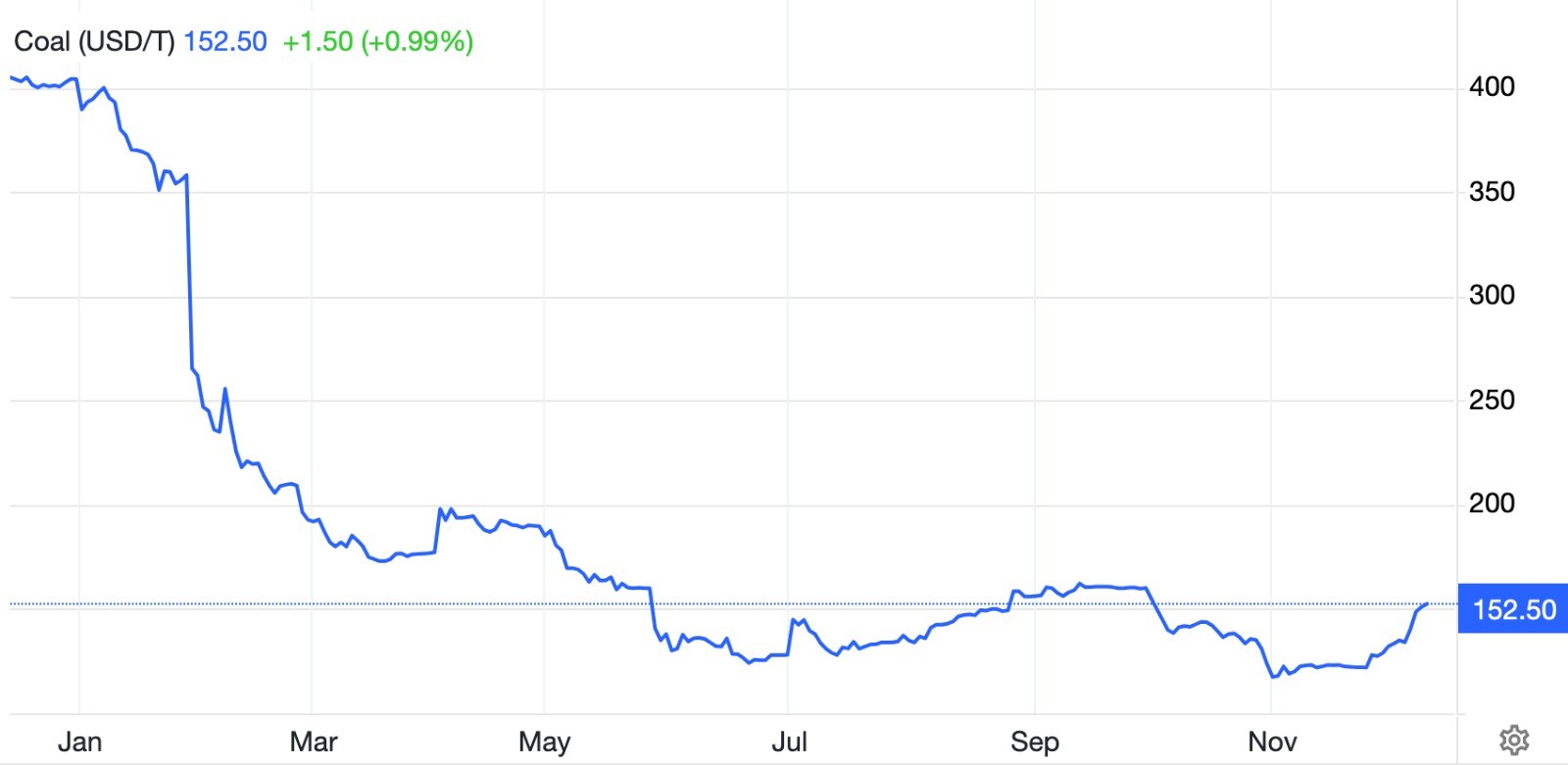 IDXChannel - Batu bara berjangka Newcastle menguat 0,99 persen di level USD152,5 per ton pada perdagangan Senin (11/12/2023). Angka ini menjadi level tertinggi dalam sebulan seiring permintaan yang kuat di pasar Asia.