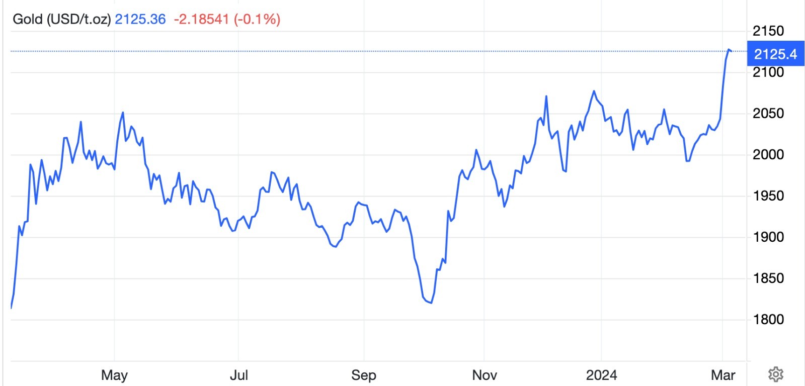 IDXChannel - Harga emas di pasar spot berada di kisaran USD2.125 per troy ons, pada perdagangan Rabu (5/3/2024). Angka ini masih di kisaran level tertinggi sepanjang sejarah alias all time high (ATH).