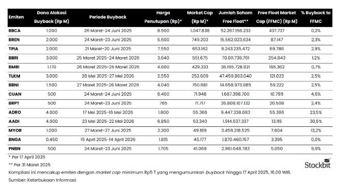 "Kami menilai buyback para emiten, serta sejumlah buyback dari pengendali dan direksi, berpotensi menumbuhkan optimisme para pelaku pasar dari dalam negeri," tulis riset tersebut.