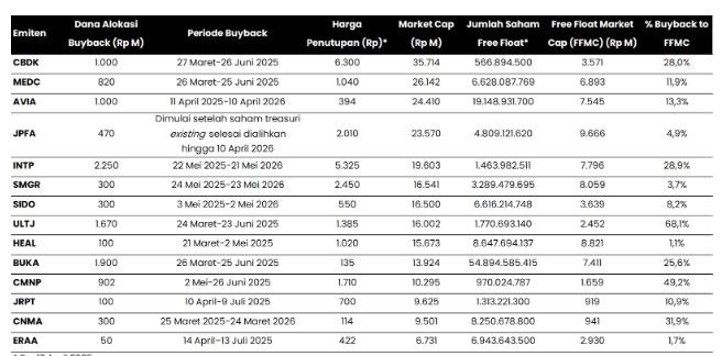Dia menjelaskan, posisi buyback yang dilakukan di bottom atau harga bawah biasanya mengindikasikan bahwa valuasi perusahaan sudah cukup murah bagi emiten.