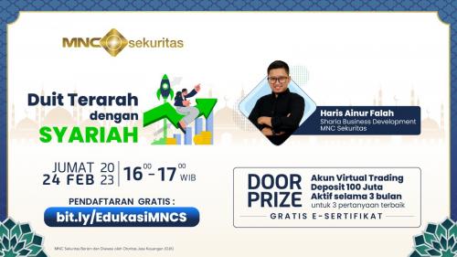 Jangan lewatkan webinar MNC Sekuritas “Duit Terarah dengan Syariah” pada Jumat (24/2/2023) pukul 16.00 WIB bersama Sharia Business Development MNC Sekuritas Haris Ainur Fallah.
