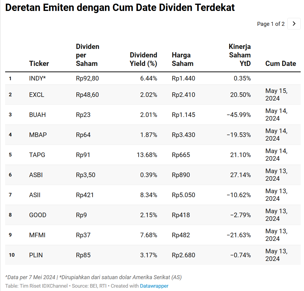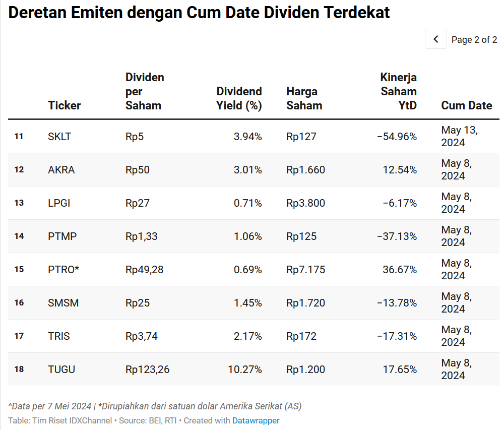 Singkat kata, sederet emiten di atas memang menawarkan dividen yang baik. Namun, investor tetap perlu memerhatikan sejumlah faktor penting dalam berburu dividen, mulai dari horizon investasi, tren harga saham, valuasi perusahaan, hingga fundamental emiten.