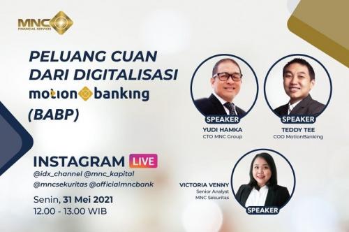 Layanan perbankan digital tersebut akan diusung dengan nama MotionBanking, yang merupakan platform “digital distruptor” untuk meramaikan euforia digitalisasi Perbankan di Indonesia. MotionBanking diharapkan menjadi lokomotif pertumbuhan emiten Perbankan berkode BABP.