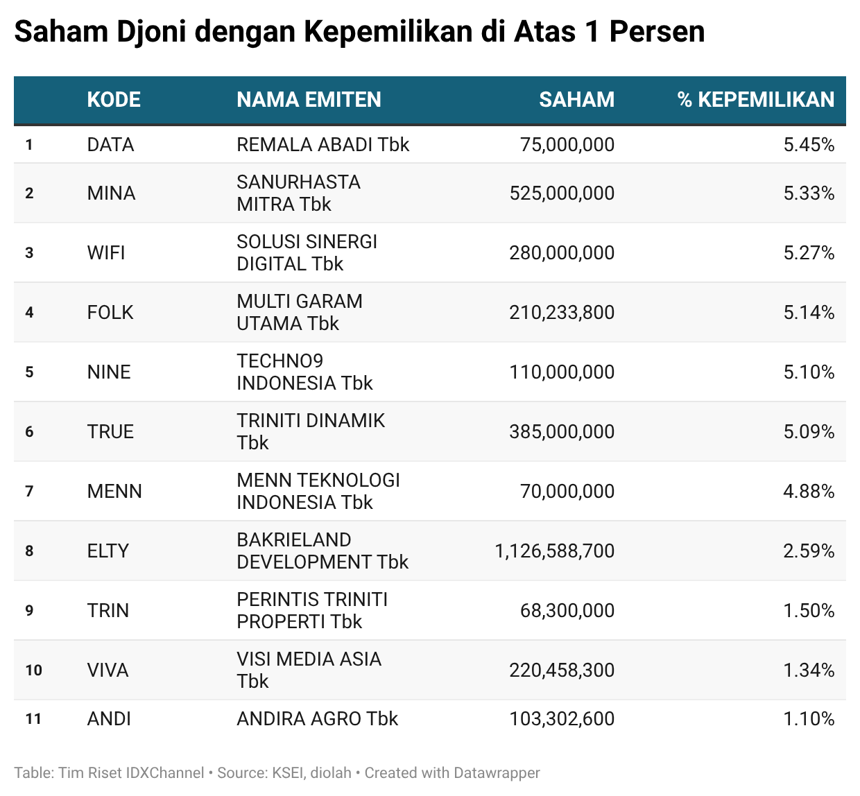 Sosok Djoni sendiri mulai menjadi sorotan pelaku pasar sejak awal 2025. Aksi akumulasi yang agresif membuat namanya cepat muncul sebagai pemegang saham di atas 5 persen di sejumlah emiten teknologi dan digital.