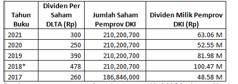 Memang, perolehan dividen tertinggi milik Pemprov DKI tahun ini masih kalah dari raihan 2019 (atau untuk tahun buku 2018) yang mencapai Rp100,47 miliar.