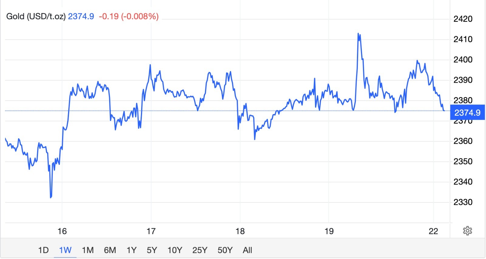Sebelumnya, emas naik melampaui USD2.410 per troy ons pada Jumat (19/4), kembali menyentuh rekor tertinggi baru (new all-time high/ATH).