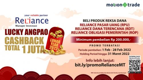 Menjelang perayaan Imlek, MNC Sekuritas menggandeng Reliance Manajer Investasi dalam menggelar promo Imlek bertajuk Lucky Angpau Lunar Year 2022 dengan total cashback senilai Rp1 juta.