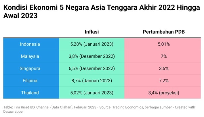 Di Asia Tenggara, negara-negara yang terkenal dengan sebutan ASEAN 5 yakni Indonesia, Malaysia, Filipina, Singapura dan Thailand mengalami pertumbuhan mengesankan sepanjang 2022. (Lihat grafik di bawah ini)
