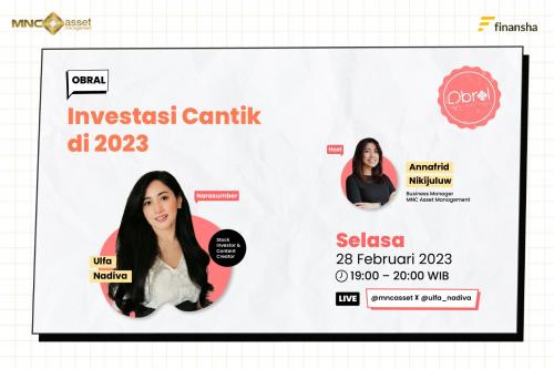 Menanggapi hal ini PT MNC Kapital Indonesia Tbk (BCAP) melalui unit bisnis MNC Asset Management (MNC AM) akan berkolaborasi dalam program OBRAL (Obrolan Seputar Finansial) dengan Ulfa Nadiva yang merupakan seorang stock investor dan content creator yang mengusung tema “Investasi Cantik di Tahun 2023” melalui IG Live pada hari Selasa, 28 Februari 2023, pukul 19.00 WIB.