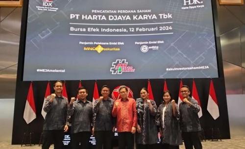 IDXChannel - Saham PT Harta Djaya Karya Tbk (MEJA) dibuka naik 9,70% saat listing perdana di Bursa Efek Indonesia (BEI) pada Senin (12/2/2024).