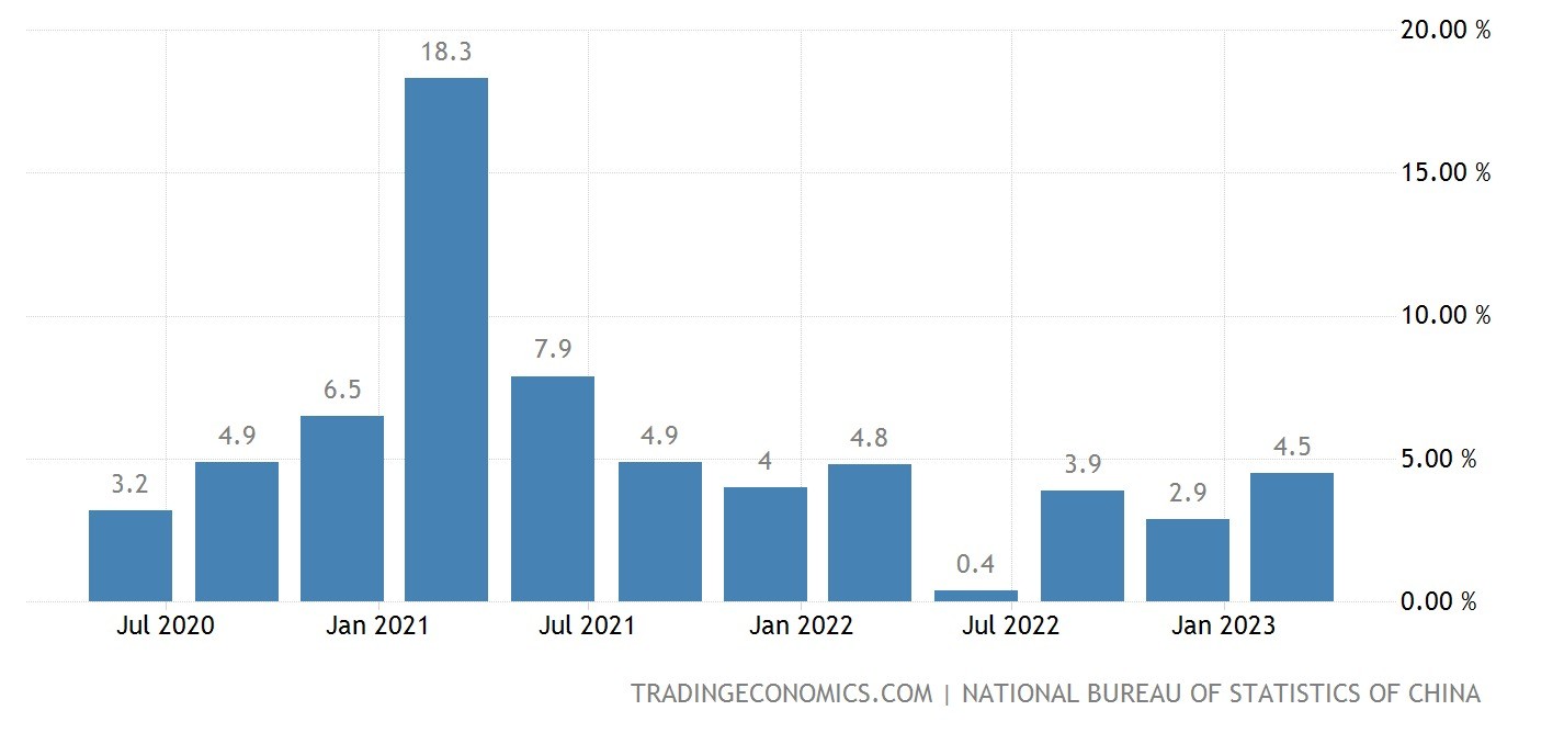 IDXChannel - China baru saja merilis data pertumbuhan produk domestik bruto (PDB) terbaru yang menunjukkan ekonomi China tumbuh 4,5% year-on-year (yoy).