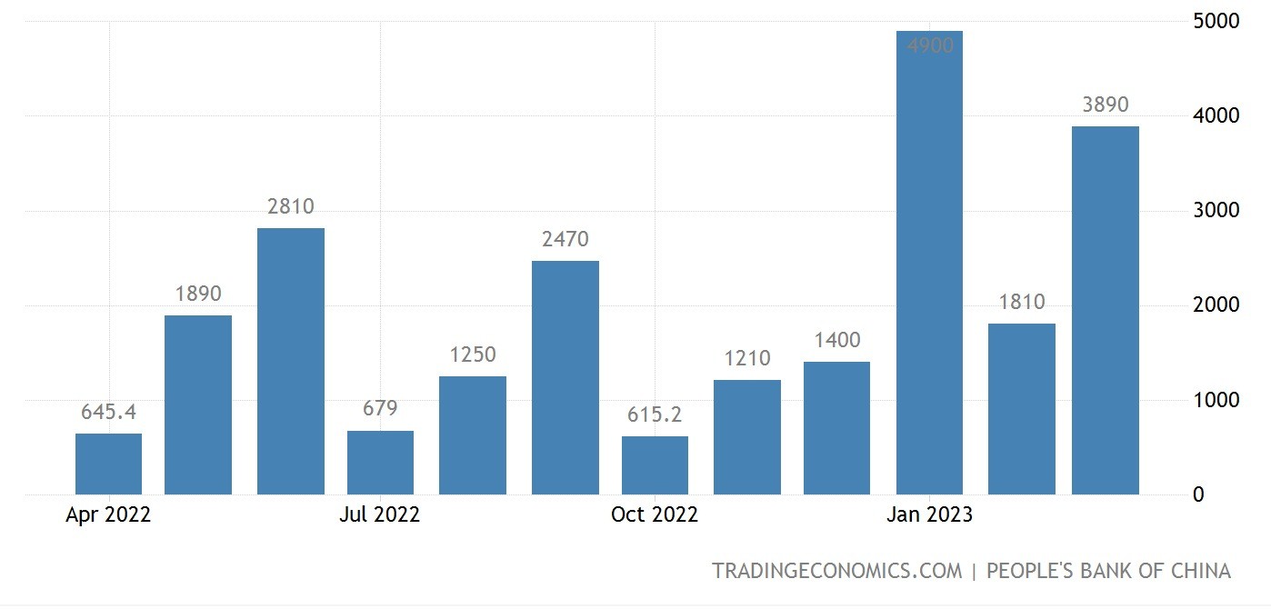 Angka ini naik dari bulan sebelumnya sebesar CNY1,81 triliun dan di atas ekspektasi pasar sebesar CNY3,24 triliun. (Lihat grafik di bawah ini.)